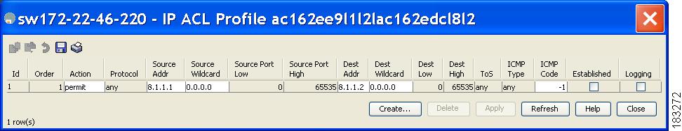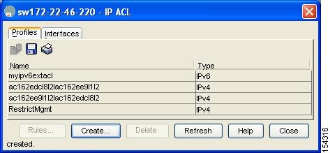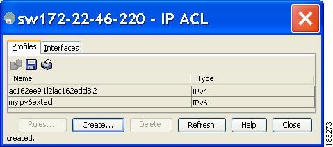 This IP-ACL name must have already been created using the Create Profiles dialog box. If not, no filters will be enabled until you to go to the Create Profiles dialog box and create the profile.