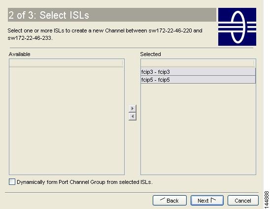 Click Next. You see an editable list of associated ISLs and available ISLs for this PortChannel.