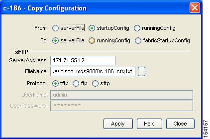 Select the destination of the file (server file, running configuration, fabric startup configuration).