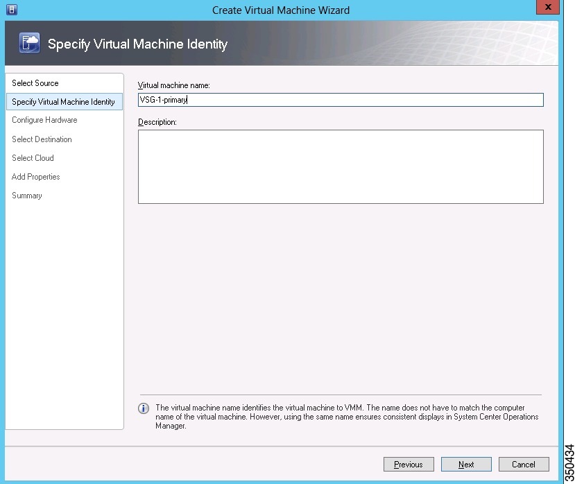 Virtual Machine Identity screen, enter the name for the Cisco VSG in