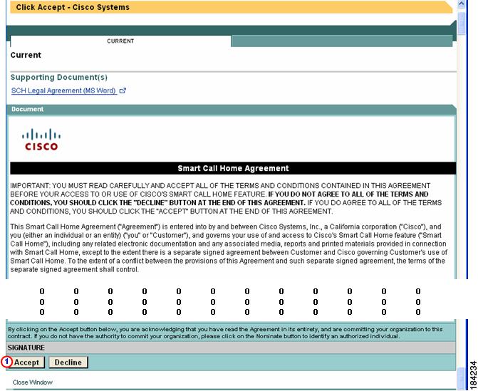 If this is your first time logging on to Smart Call Home and have not yet accepted the Legal Agreement, the Legal Agreement window will open.