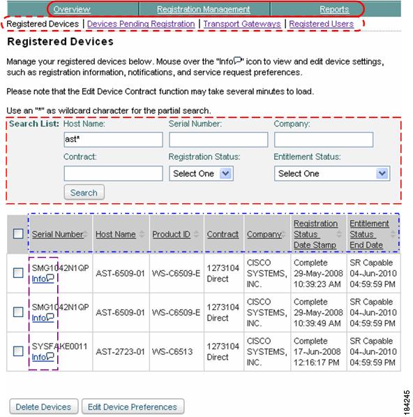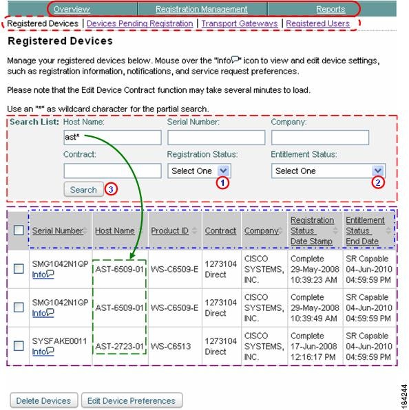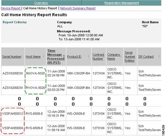 Smart Call Home will illustrate these different serial name / host name relationships on the following web pages: