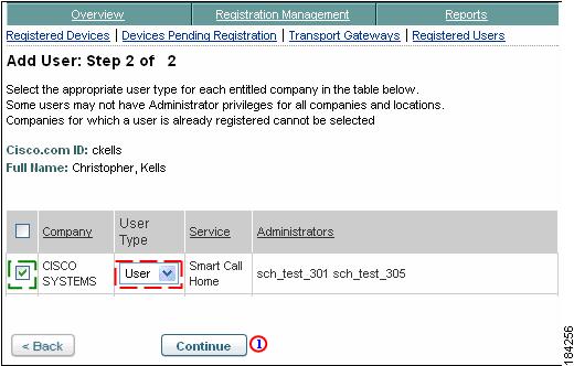 Go to the Smart Call Home application at URL: https://tools.cisco.com/sch/ the login prompt window opens. One of two options will occur: