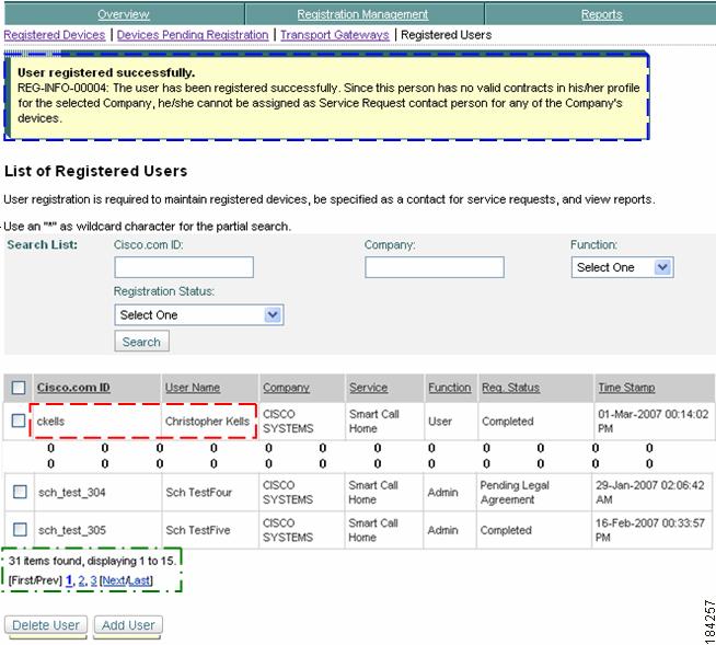 Enter your Cisco.com ID and password in the Registered User area; this Registered User is a user with a Cisco.com ID, this reference to a registered user is independent from the Smart Call Home user registration.