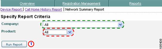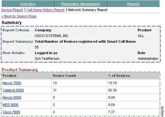 Network Summary Report Results for a Specific Product (Catalyst 6500)