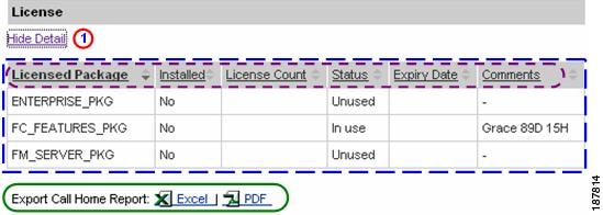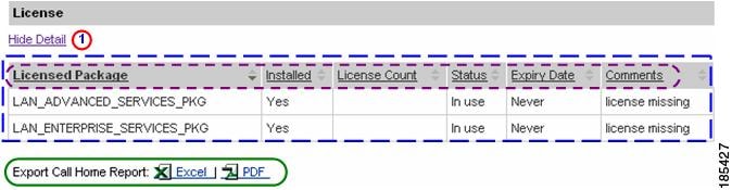 Click Show Detail under the Software License area name; this toggles the option to Hide Detail
