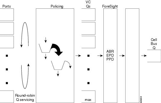 Two types of frame discard, namely, early packet discard and random early detection, are supported for AAL5 traffic. The type of frame-discard mechanism is configurable per connection.