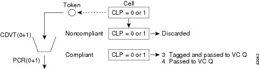 When a connection is provisioned, there are two parameters that are specified for handling CLP. They are the CLP hi and CLP lo thresholds. If the queue is full when the cell arrives, the cell is discarded. If the queue is filled above CLP hi, and the incoming cell has CLP = 1, then the cell is discarded. If the queue is filled below CLP lo, then the cell is enqueued, regardless of its CLP setting. The area of the queue between CLP hi and CLP lo is called the "transition region." The transition region provides hysteresis for discarding incoming cells that have CLP = 1. If the queue was filled above CLP hi but is now emptying such that it is in the transition region (but has not dropped below CLP lo), then incoming cells with CLP = 1 are still discarded until the queue drops below the CLP lo threshold. Similarly, if the queue was filled below CLP lo (but is now filling such that it is in the transition region) (but has not filled above CLP hi), then all incoming cells are enqueued, regardless of their CLP setting.