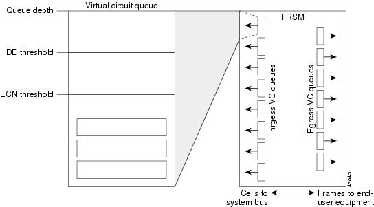 In the switch fabric, there is buffering at three levels: VC queues, CoS queues, and interface queues.