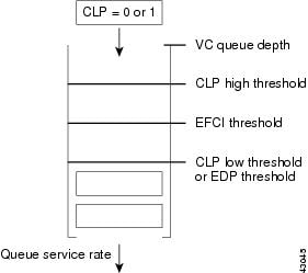 EFCI threshold—Determines congestion marking. When the Qbin reaches the EFCI threshold, all arriving cells into the Qbin have their EFCI bit set to 1 to notify the CPE of congestion in the network.