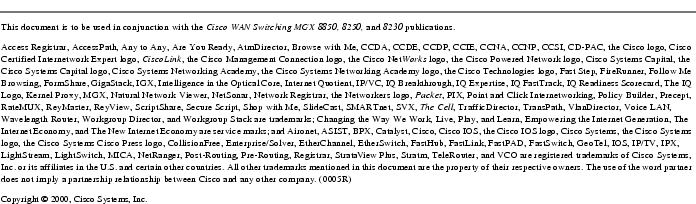 While no new features are incorporated into Software Release 1.1.24, this software release does provide support to two new wide area switches, the MGX 8230 and the MGX 8250, as well as continued support for the MGX 8850 switch.