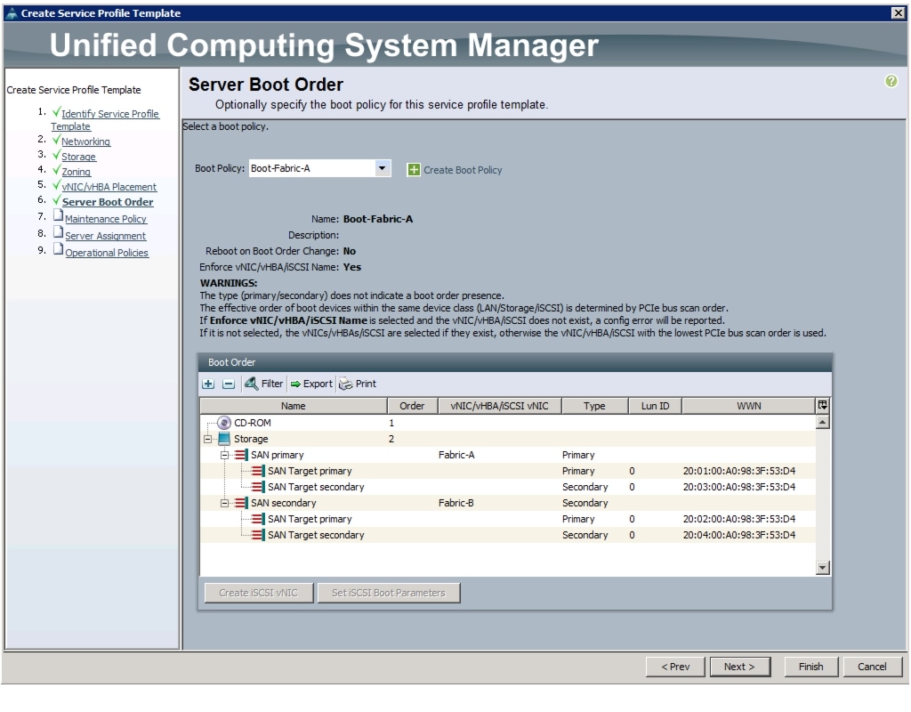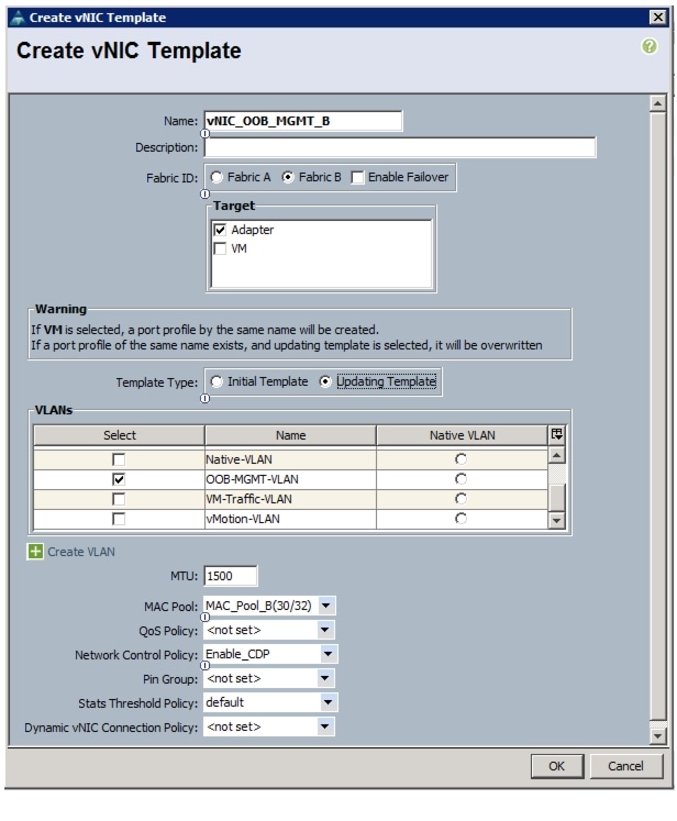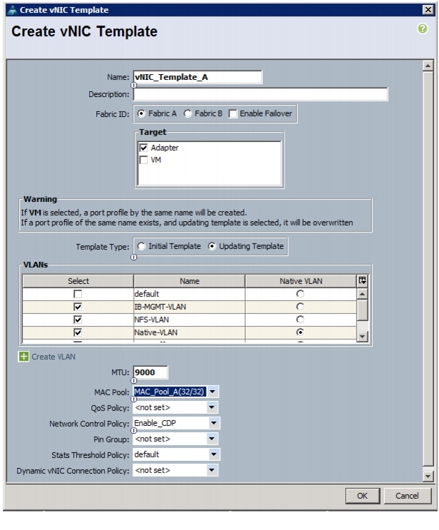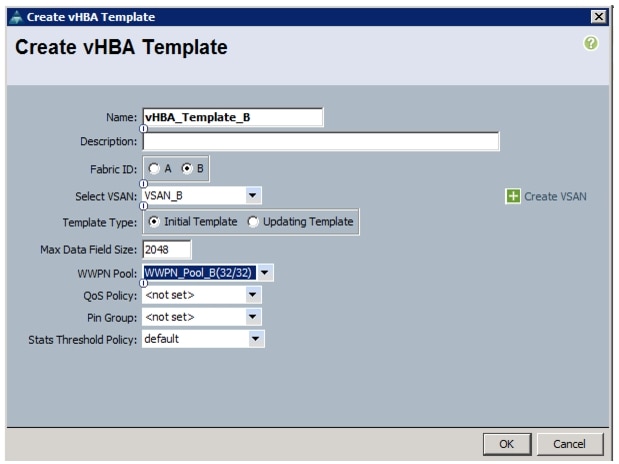 Create vHBA Templates for Fabric A and Fabric B
