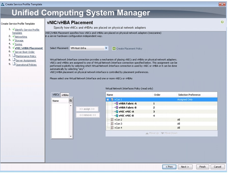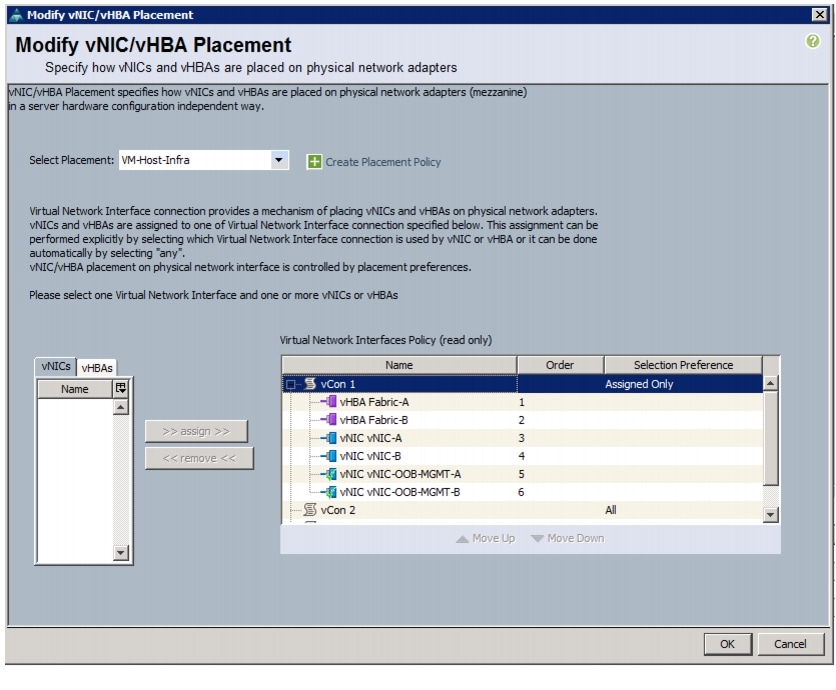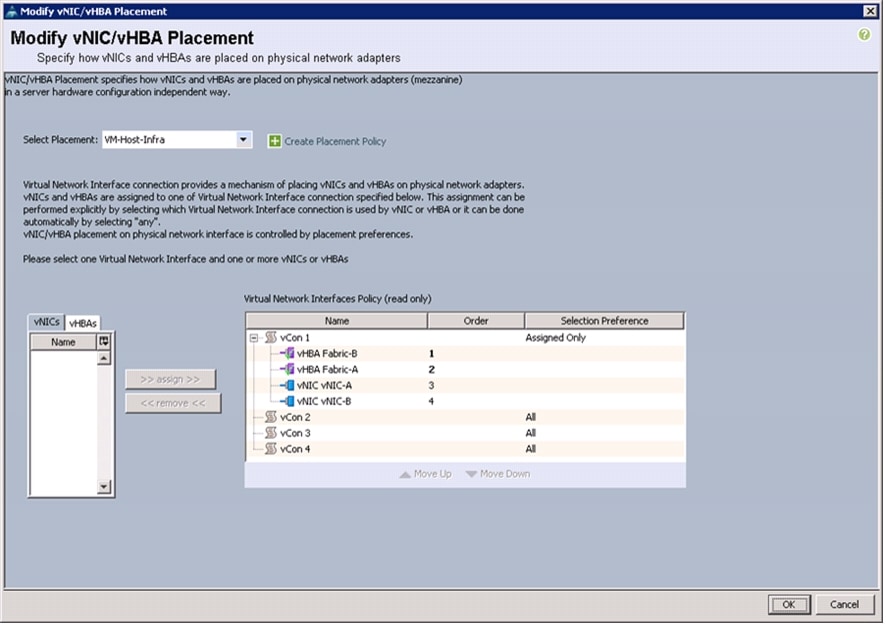 Create vNIC/vHBA Placement Policy for Virtual Machine Infrastructure Hosts