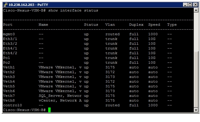 !Command: show running-config!Time: Wed Sep 11 14:44:09 2013version 6.0(2)N2(2)feature fcoeswitchname NX5548UP-Bfeature npivno feature telnetcfs eth distributefeature lacpfeature vpcfeature lldpusername admin password 5 $1$aVldNDJH$igwxQD3t9h9ojPB0VisZ8. role network-adminbanner motd #Nexus 5000 Switch#ip domain-lookupclass-map type qos class-fcoeclass-map type queuing class-fcoematch qos-group 1class-map type queuing class-all-floodmatch qos-group 2class-map type queuing class-ip-multicastmatch qos-group 2class-map type network-qos class-fcoematch qos-group 1class-map type network-qos class-all-floodmatch qos-group 2class-map type network-qos class-ip-multicastmatch qos-group 2policy-map type network-qos jumboclass type network-qos class-fcoepause no-dropmtu 2158class type network-qos class-defaultmtu 9216multicast-optimizesystem qosservice-policy type qos input fcoe-default-in-policyservice-policy type queuing input fcoe-default-in-policyservice-policy type queuing output fcoe-default-out-policyservice-policy type network-qos jumbosnmp-server user admin network-admin auth md5 0xd1b0309fc2a032aef4bc1d2566bf7c23 priv 0xd1b0309fc2a032aef4bc1d2566bf7c23 localizedkeyntp server 10.72.242.70 use-vrf managementvrf context managementip route 0.0.0.0/0 10.238.162.1vlan 1vlan 2name Native-VLANvlan 102fcoe vsan 102name FCoE_Fabric_Bvlan 3170name OOB-MGMT-VLANvlan 3172name NFS-VLANvlan 3173name vMotion-VLANvlan 3174name VM-Traffic-VLANvlan 3175name IB-MGMT-VLANvlan 3176name Packet-Control-VLANspanning-tree port type edge bpduguard defaultspanning-tree port type network defaultport-channel load-balance ethernet source-dest-portvpc domain 7role priority 20peer-keepalive destination 10.238.162.248 source 10.238.162.249auto-recoveryport-profile default max-ports 512vsan databasevsan 102 name "Fabric_B"device-alias databasedevice-alias name fcp_lif01b pwwn 20:02:00:a0:98:3f:53:d4device-alias name fcp_lif02b pwwn 20:04:00:a0:98:3f:53:d4device-alias name VM-Host-Infra-01_B pwwn 20:00:00:25:b5:00:0b:0fdevice-alias name VM-Host-Infra-02_B pwwn 20:00:00:25:b5:00:0b:1fdevice-alias commitfcdomain fcid databasevsan 102 wwn 50:0a:09:83:88:ad:35:09 fcid 0xbd0000 dynamicvsan 102 wwn 20:02:00:a0:98:3f:53:d4 fcid 0xbd0001 dynamic! [fcp_lif01b]vsan 102 wwn 50:0a:09:83:88:6c:0a:8c fcid 0xbd0020 dynamicvsan 102 wwn 20:04:00:a0:98:3f:53:d4 fcid 0xbd0021 dynamic! [fcp_lif02b]vsan 102 wwn 22:c9:54:7f:ee:aa:ac:bf fcid 0xbd0040 dynamicvsan 102 wwn 20:00:00:25:b5:00:0b:0f fcid 0xbd0041 dynamic! [VM-Host-Infra-01_B]vsan 102 wwn 20:00:00:25:b5:00:0b:1f fcid 0xbd0042 dynamic! [VM-Host-Infra-02_B]interface port-channel1description "GLC-T connected to UPLINK INFRA"switchport mode trunkswitchport trunk allowed vlan 3170,3175spanning-tree port type normalvpc 1interface port-channel10description vPC peer-linkswitchport mode trunkswitchport trunk native vlan 2switchport trunk allowed vlan 3170,3172-3176spanning-tree port type networkvpc peer-linkinterface port-channel11description FAS3250-Cluster-01switchport mode trunkswitchport trunk native vlan 2switchport trunk allowed vlan 102,3172spanning-tree port type edge trunkvpc 11interface port-channel12description FAS3250-Cluster-02switchport mode trunkswitchport trunk native vlan 2switchport trunk allowed vlan 102,3172spanning-tree port type edge trunkvpc 12interface port-channel13description FI6248-Aswitchport mode trunkswitchport trunk native vlan 2switchport trunk allowed vlan 3170,3172-3175spanning-tree port type edge trunkvpc 13interface port-channel14description FI6248-Bswitchport mode trunkswitchport trunk native vlan 2switchport trunk allowed vlan 3170,3172-3175spanning-tree port type edge trunkvpc 14interface port-channel15description FI6248-B:FCoEswitchport mode trunkswitchport trunk native vlan 2switchport trunk allowed vlan 102spanning-tree port type edge trunkinterface vfc11bind interface Ethernet1/1switchport trunk allowed vsan 102switchport description FAS3250-Cluster-01:4ano shutdowninterface vfc12bind interface Ethernet1/2switchport trunk allowed vsan 102switchport description FAS3250-Cluster-02:4ano shutdowninterface vfc15bind interface port-channel15switchport trunk allowed vsan 102switchport description NX5548UP-B:FCoEno shutdownvsan databasevsan 102 interface vfc11vsan 102 interface vfc12vsan 102 interface vfc15interface Ethernet1/1description FAS3250-Cluster-01:e4aswitchport mode trunkswitchport trunk native vlan 2switchport trunk allowed vlan 102,3172channel-group 11 mode activeinterface Ethernet1/2description FAS3250-Cluster-02:e4aswitchport mode trunkswitchport trunk native vlan 2switchport trunk allowed vlan 102,3172channel-group 12 mode activeinterface Ethernet1/3interface Ethernet1/4interface Ethernet1/5interface Ethernet1/6interface Ethernet1/7interface Ethernet1/8switchport mode trunkswitchport trunk allowed vlan 3170,3175speed 1000channel-group 1 mode activeinterface Ethernet1/9interface Ethernet1/10interface Ethernet1/11description FI6248-A:1/20switchport mode trunkswitchport trunk native vlan 2switchport trunk allowed vlan 3170,3172-3175channel-group 13 mode activeinterface Ethernet1/12description FI6248-B:1/20switchport mode trunkswitchport trunk native vlan 2switchport trunk allowed vlan 3170,3172-3175channel-group 14 mode activeinterface Ethernet1/13description NX5548UP-A:1/13switchport mode trunkswitchport trunk native vlan 2switchport trunk allowed vlan 3170,3172-3176channel-group 10 mode activeinterface Ethernet1/14description NX5548UP-A:1/14switchport mode trunkswitchport trunk native vlan 2switchport trunk allowed vlan 3170,3172-3176channel-group 10 mode activeinterface Ethernet1/15description Nexus1110-X-A:Eth2switchport mode trunkswitchport trunk allowed vlan 3175-3176spanning-tree port type edge trunkspeed 1000vpc orphan-port suspendinterface Ethernet1/16description Nexus1110-X-B:Eth2switchport mode trunkswitchport trunk allowed vlan 3175-3176spanning-tree port type edge trunkspeed 1000vpc orphan-port suspendinterface Ethernet1/17interface Eth
