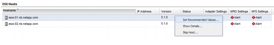 In the vSphere Client connected to vSphere, under Home > Inventory > Hosts and Clusters, right-click each of the two new ESXi hosts and using NetApp submenu, mount the 7-Mode infra_datastore_1 to the two new servers that are booted from the clustered storage.