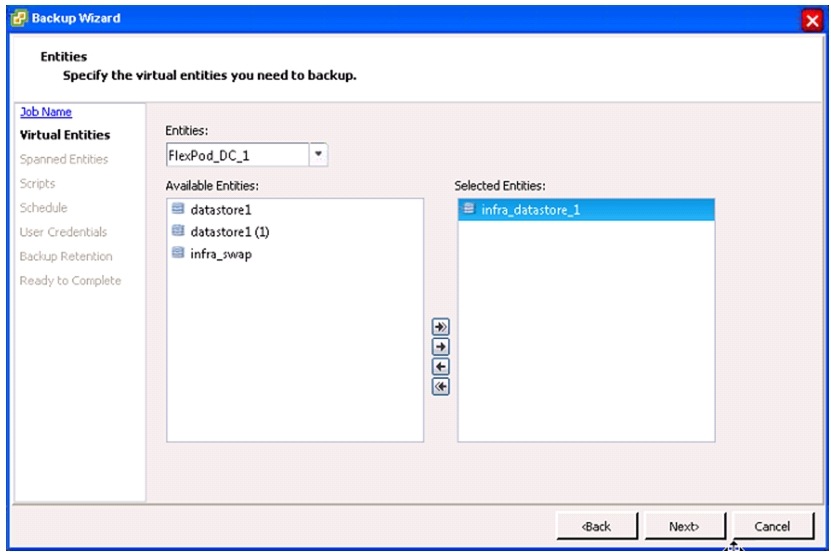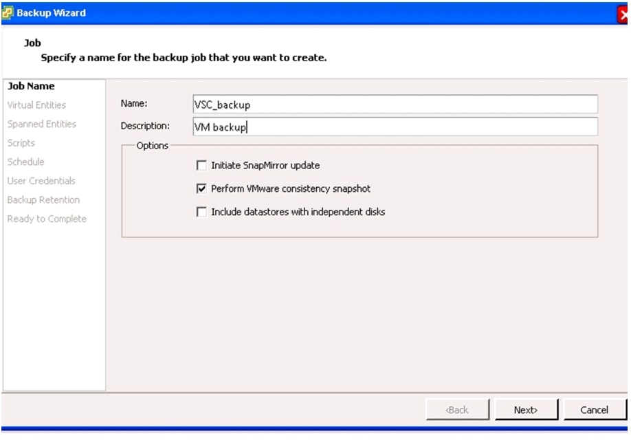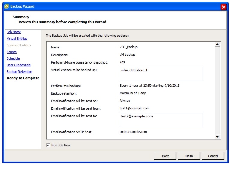 Add the storage cluster to the VSC Backup and Recovery module, and optionally create a recurring backup job for the datastore now containing the management virtual machines. Refer to the section, "VSC 4.1 Backup and Recovery."