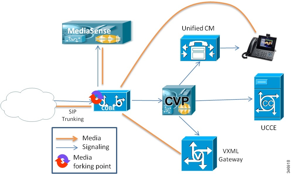 from an endpoint, through CUBE, to MediaSense. In all cases,