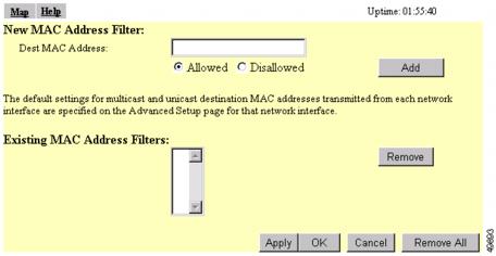 MAC address filters are powerful, and you can lock yourself out of the access point if you make a mistake setting up the filters. If you accidentally lock yourself out of your access point, follow the instructions in the "Using the Command-Line Interface" section to use the CLI to disable the filters.