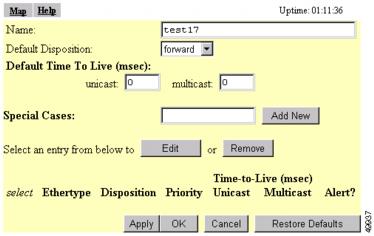 Enter milliseconds in the Time-to-Live entry fields. If you leave these settings at 0, the protocol adopts the default time-to-live values you entered in Step 7.