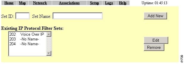 This section describes how to set up filtering to control the flow of data through the access point. You can filter data based on protocols and MAC addresses. Each type of filtering is explained in the following sections: