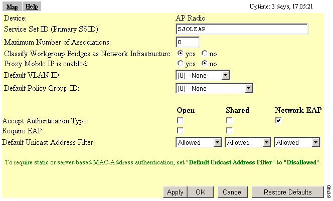 If you plan to block multicast traffic, you must set the Default Multicast Address Filter parameter to disallowed in the AP Radio Advanced Page and the The Ethernet Advanced Page.