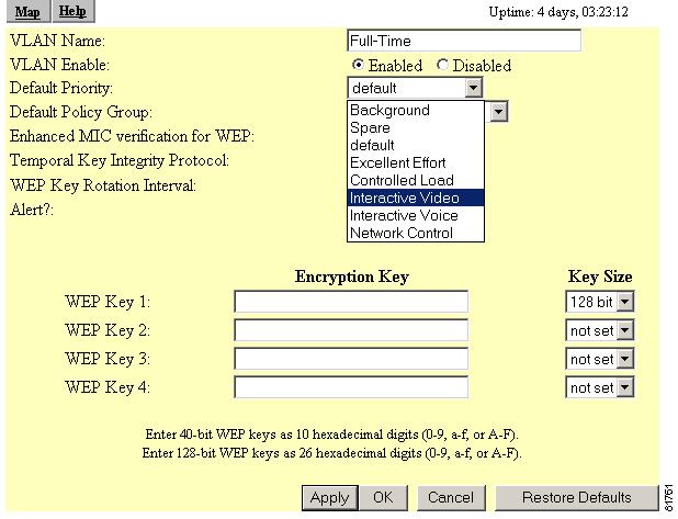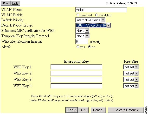 If WEP is set on your wireless phone, you must set an identical WEP key for the interactive voice VLAN. Follow these steps to set the WEP key.