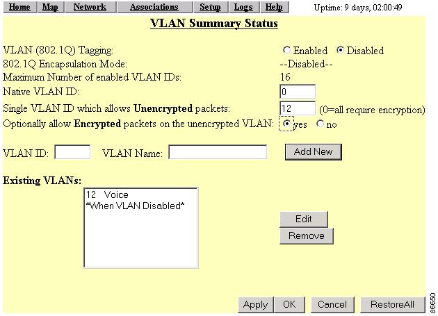 From the Setup page, click VLAN in the Associations section. The VLAN Setup page appears.
