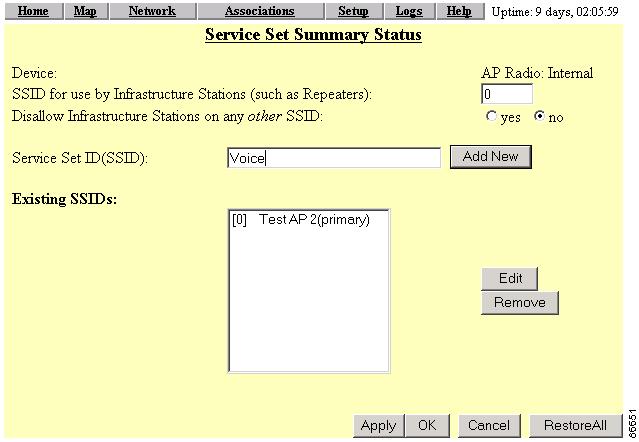 In the Associations section, click SSIDs: Int. The AP Radio: Internal Service Sets page appears.