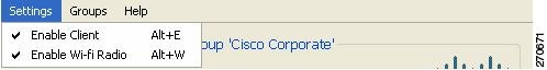 Menu area—Enables and disables SSC and the Wi-Fi radio, views and configures groups, and obtains helpful information.
