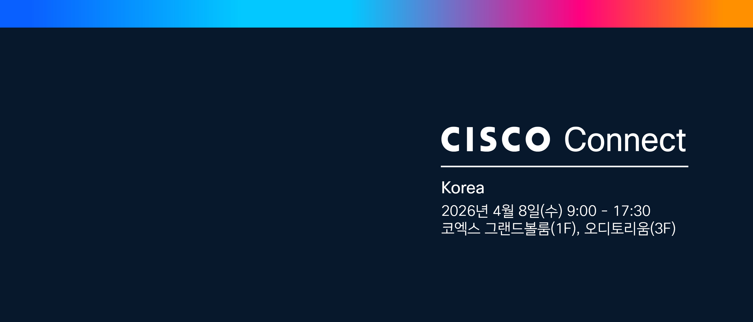 | 10:00 - 11:30 | [Opening & Keynote] AI 시대를 여는 인사이트 AI 시대, 기업이 지금 반드시 준비해야 할 인프라 전략과 시스코의 비전을 한 자리에서 확인합니다. | ||||