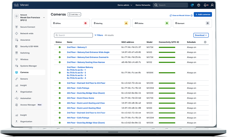 Migrate your existing Axis devices into the Cisco cloud-managed dashboard for easy setup, automatic updates, remote viewing, and centralized management.