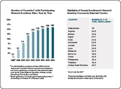 *截止到2007年7月29日 与世界其他地区相比,上述国家中妇女占学员总数的比例较高。 目前的公司日益依靠网络技术来支持其业务发展目标,同时对具备丰富技能来支持网络的员工的需求也不断提高。因此,思科重新设计了思科网络技术学院的课程,为入门级学生提供必要的技能培训,以便他们能在多个行业的广泛的IT职业生涯中获得成功。今年我们又进行了一些改动,从而更好地满足来自不同社会经济、文化和教育背景的学生的需求,同时使课程能够更加符合市场需要。 作为最不发达国家计划的一部分,思科在公私领域都与之建立和发展了合作关系,向全球最不发达国家(LDC)的边远地区民众提供思科网络技术学院课程,以弥补数字鸿沟。自2000年起,已在53个LDC建立了250多个思科网络技术学院,培训了近50,000名学生。其中,有超过12,700名学生成功完成了思科CCNA培训的全部四个模块的学习,在CCNA毕业生中,妇女所占比例为29%。 妇女通常难以获得IT行业的职业发展机遇。如果没有具针对性的招聘和培训,妇女就将继续落后。为弥补全球性别间的数字鸿沟,思科正在实施我们称之为“ABC”的性别计划:接入互联网、丰富知识和发展职业生涯。 思科的性别计划是思科网络技术学院的一个组成部分,通过与地区电讯中心、社区组织、避难所、女子学校、女子学院和大学合作,为女性提供互联网接入。这其中包括向全球非政府组织(NGO)捐赠设备等。 因为文化和经济方面的障碍,世界的部分地区在为男性和女性提供同等技术教育方面有一定困难。思科的性别计划在这些地区取得了巨大的进展。 思科董事会主席兼CEO John Chambers 2003年在世界经济论坛上呼吁确立一个由先进技术支持的教育模式,来缩小发达国家和发展中国家间的差距,因此全球教育计划(GEI)应运而生。基于其理念和对推行先进教育的承诺,我们选择约旦政府与世界经济论坛及领先企业合作开展此计划。 后续GEI项目包括:合作教育计划,这是一个与联合国教科文组织(UNESCO)和世界经济论坛联合开展的计划,旨在实现多方教育合作;埃及教育计划,范围涉及埃及的2000所学校、15所大学、650,000名学生和70,000名教师,旨在改进电子学习;以及拉基斯坦教育计划,它通过在印度最大省的主要农业区发展IT技能,来改善当地的社会和经济状况。 思科认为,增加受教育的机遇,能够解决非洲国家在发展道路上所遇到的许多问题。作为领导非洲发展新伙伴关系计划的五家公司之一,思科正在六个非洲国家的19所学校部署IT学习环境,这六个国家是:阿尔及利亚,加纳,毛里求斯,卢旺达,塞内加尔和南非。我们还为另外九个国家的39所学校提供网络技术。到目前为止,我们所作的努力已使30,000名初次接触计算机和互联网的学生受益。明年,我们希望使受益学生达到50,000人。 通过为我们的社会投资选择适合的人员、资金和产品,思科致力于弥补发达国家和发展中国家间的数字鸿沟,增加全球社会中的机遇,并满足人们、特别是边远地区人群的基本需求。 凭借我们的人本服务和支持计划,我们展示了通过合作,我们能变得多么强大。 业界公认思科基金对于接受资助者会进行严格审查。例如,我们在评估一家申请资助的机构时,我们要确保它的申请绝不会对任何组织或个人造成伤害。我们还须审查该机构是否运营良好、保持成本低廉,以使它们服务的客户能获得最大收益。