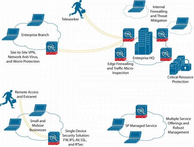 ホワイト ペーパー統合型セキュリティ アプライアンスと専用セキュリティ アプライアンスの比較Cisco ASA 5500 シリーズ、Cisco PIX セキュリティ アプライアンス、Cisco IPS 4200 シリーズ、および Cisco VPN 3000 シリーズ コンセントレータの使い分けシスコでは、利用環境の要件に合わせてカスタマイズ可能なセキュリティ ソリューションを提供します。Cisco ASA 5500 シリーズは、単一のプラットフォームにさまざまな機能を持つ統合されたセキュリティ/VPN サービスを実現するためのアプライアンスです。ファイアウォール、Intrusion Prevention System(IPS; 侵入防御システム)、およびネットワーク ウイルス対策サービス プロファイルが統合された Cisco ASA 5500 シリーズを使うと、お客様は幅広い適応型の攻撃防御サービスを利用できます。VPN サービスの場合、Cisco ASA 5500 シリーズが持つ柔軟性の高いテクノロジーを利用すると、リモートアクセスおよびサイト間接続の要件に適したソリューションを実現できます。 Cisco ASA 5500 シリーズの幅広い VPN およびセキュリティ サービス プロファイルを利用すると、単体でさまざまな用途に使用できます。Cisco ASA 5500 シリーズを統合型の攻撃防御デバイスとして中央サイトに導入する場合は、アクセス制御、アプリケーション検査、およびワーム/ウイルス/マルウェア対策などのテクノロジーを使用します。また、専用のリモートアクセス デバイスとして使用する場合は、IP Security(IPSec)/Secure Socket Layer(SSL)VPN の機能を利用します。部門間のアクセス制御を行う場合や、ユーザが知らないうちにネットワーク内に持ち込んでしまうワーム、ウイルス、およびその他の不正コードを防御する場合は、Cisco ASA 5500 シリーズをネットワークの内部に移動します。小規模企業やブランチ オフィス環境の場合、Cisco ASA 5500 は「オールインワン」デバイスとして使用できます。Cisco ASA 5500 シリーズは、幅広い攻撃防御や VPN サービスを備えているだけでなく、予算および運用面でも小規模企業やブランチ オフィス環境での利用に適しています。 Cisco ASA 5500 などの多機能型デバイス、または従来の「専用」セキュリティ アプライアンス(Cisco PIX® セキュリティ アプライアンス、Cisco IPS 4200 シリーズ センサ アプライアンス、および Cisco VPN 3000 シリーズ コンセントレータなど)のいずれを使用するか判断するには、いくつかの考慮事項を検討する必要があります。この資料では、専用アプライアンスの代わりに多機能型セキュリティ アプライアンスを導入する場合の考慮事項を、機能、運用、およびコスト面から説明します。セキュリティ/VPN アプライアンスと Cisco ルータの導入に関する考慮事項の比較はこの資料の対象外です。 シスコのセキュリティ アプライアンス製品ファミリシスコは、アプライアンスベースのセキュリティ製品を利用してセキュリティ システムを構成するお客様向けに、Cisco PIX セキュリティ アプライアンス、Cisco IPS 4200 シリーズ アプライアンス、Cisco VPN 3000 シリーズ コンセントレータ、および Cisco ASA 5500 シリーズ セキュリティ アプライアンスを提供しています。これらの製品はいずれも、小規模オフィスから本社拠点および小規模企業から大企業に至る幅広い構成や規模に適したソリューションを提供します。Cisco PIX セキュリティ アプライアンスには、SOHO 環境向けのソリューションも用意されています。以下に、各製品の機能と構成例の概要を示します。 Cisco PIX セキュリティ アプライアンス優れた評価を得ている Cisco PIX セキュリティ アプライアンスは、アプリケーション アウェアな安定性の高いファイアウォール サービスと VPN サービスを提供します。Cisco PIX セキュリティ アプライアンスは、ユーザおよびアプリケーション ポリシーの実施、マルチベクタ攻撃からの保護、およびサイト間のセキュア コネクティビティ サービスを、費用対効果の高い導入の容易なソリューションとして提供します。 Cisco IPS 4200 シリーズ センサ アプライアンスCisco IPS 4200 シリーズ センサは、悪意のある攻撃、ワーム、およびウイルスからネットワークを保護して、企業のデータやリソースが被害を受けるのを未然に防ぎます。Cisco IPS センサは、ワーム、スパイウェア/アドウェア、ネットワーク ウイルス、およびアプリケーションの不正使用といった脅威を検出、分類、および防止することによって、ネットワークを強力に保護します。 Cisco VPN 3000 シリーズ コンセントレータCisco VPN 3000 シリーズ コンセントレータは、SSL VPN 接続と IPSec VPN 接続の両方を提供するクラス最高レベルのリモートアクセス VPN ソリューションです。Cisco VPN 3000 シリーズ コンセントレータでは、リモート アクセス VPN のインストール、設定、監視を簡単に行うことができる管理システムに加えて、標準ベースの使いやすい VPN クライアントとスケーラブルな VPN トンネル終端デバイスも利用できます。 Cisco ASA 5500 シリーズ セキュリティ 