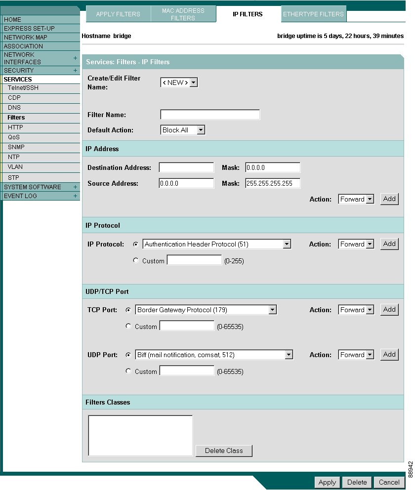 address appears in the Filters Classes field. To remove the MAC
